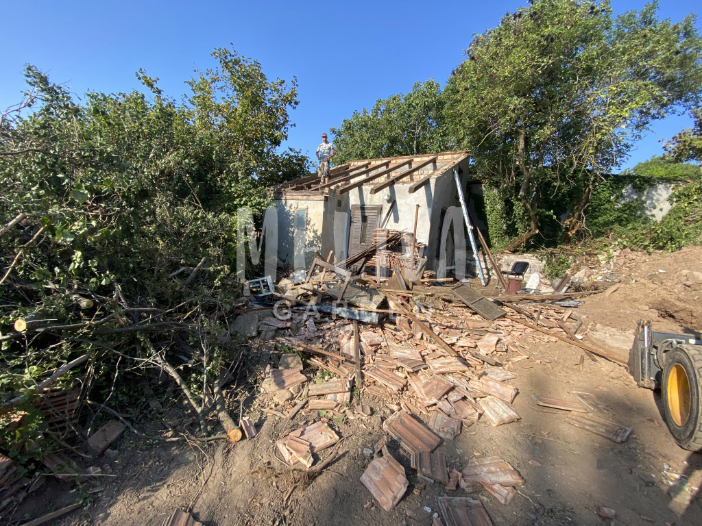 A megrendelő kérésére két rossz állapotú ingatlant is lebontottunk a területen markológéppel, a zöldhulladékot és a törmeléket elszállítottuk. A még használható tetőcserép összegyűjtésre került. A megrendelő kérésére új ereszcsatornát is felszereltek a munkatársak – kisebb kivitelezési feladatok sem jelenthetnek problémát! 👍🏻