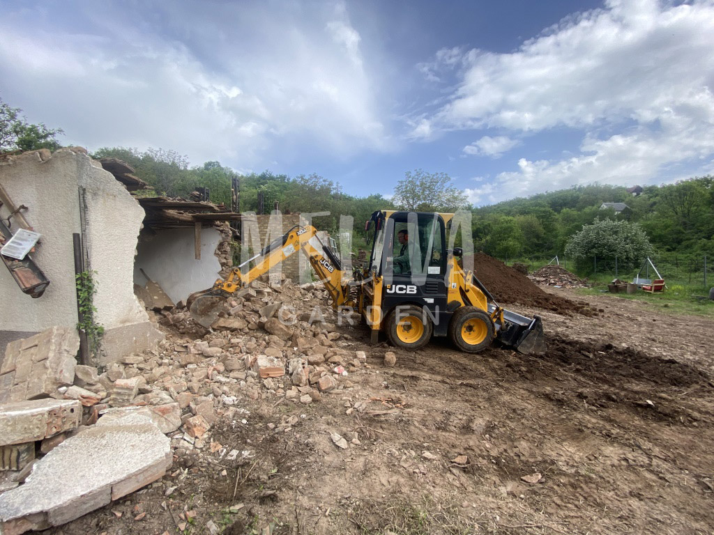 A megrendelő kérésére két rossz állapotú ingatlant is lebontottunk a területen markológéppel, a zöldhulladékot és a törmeléket elszállítottuk. A még használható tetőcserép összegyűjtésre került. A megrendelő kérésére új ereszcsatornát is felszereltek a munkatársak – kisebb kivitelezési feladatok sem jelenthetnek problémát! 👍🏻