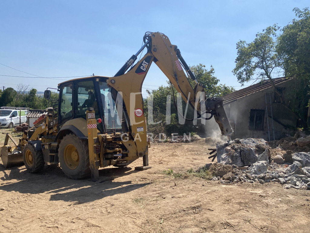 A gépi földmunka gyors és biztos megoldást nyújt, ahogy az a lenti fotósorozaton is látható. A nagyméretű betontömböket feldarabolás után szállítjuk el, ez kézi munkavégzéssel akár napikig tartó feladat is lehetne.