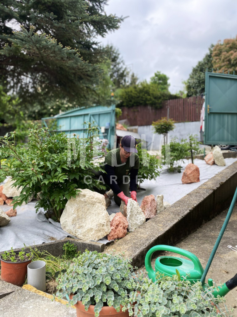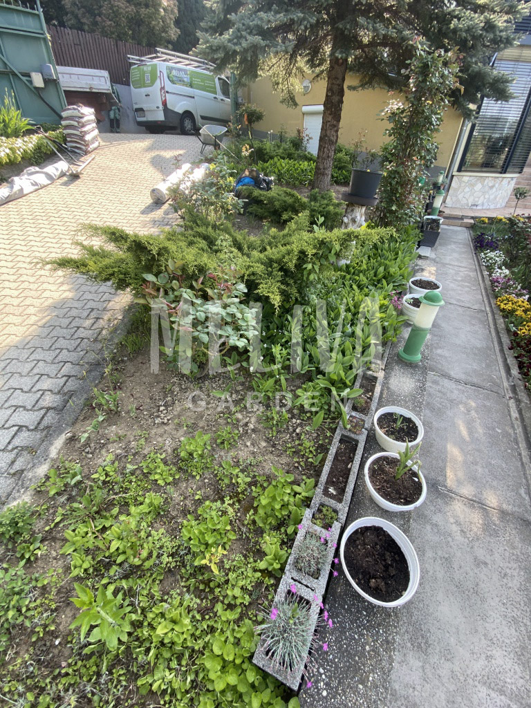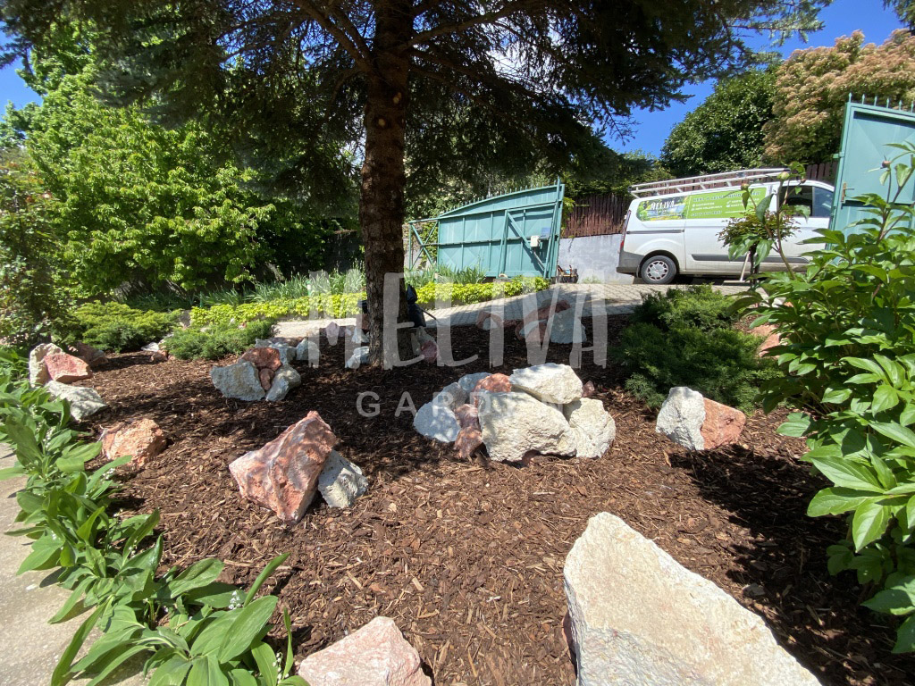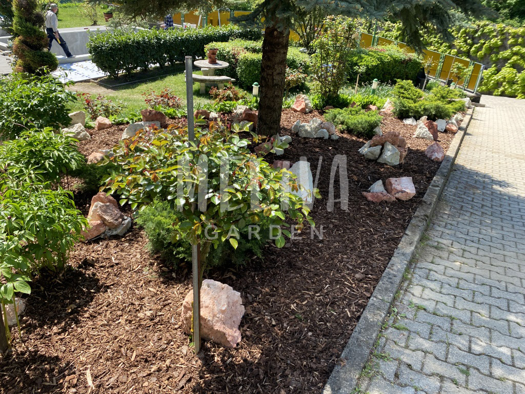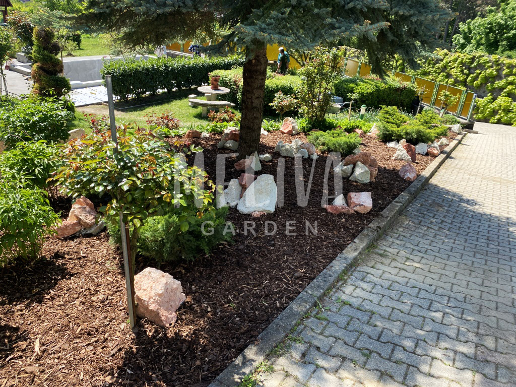 Megbízónk kérése egy kis frissítés, újítás volt. Sok ötlet közül végül a mulcs és a sziklák tetszettek meg ügyfelünknek, amit mi a tervek alapján rövid időn belül kiviteleztünk.