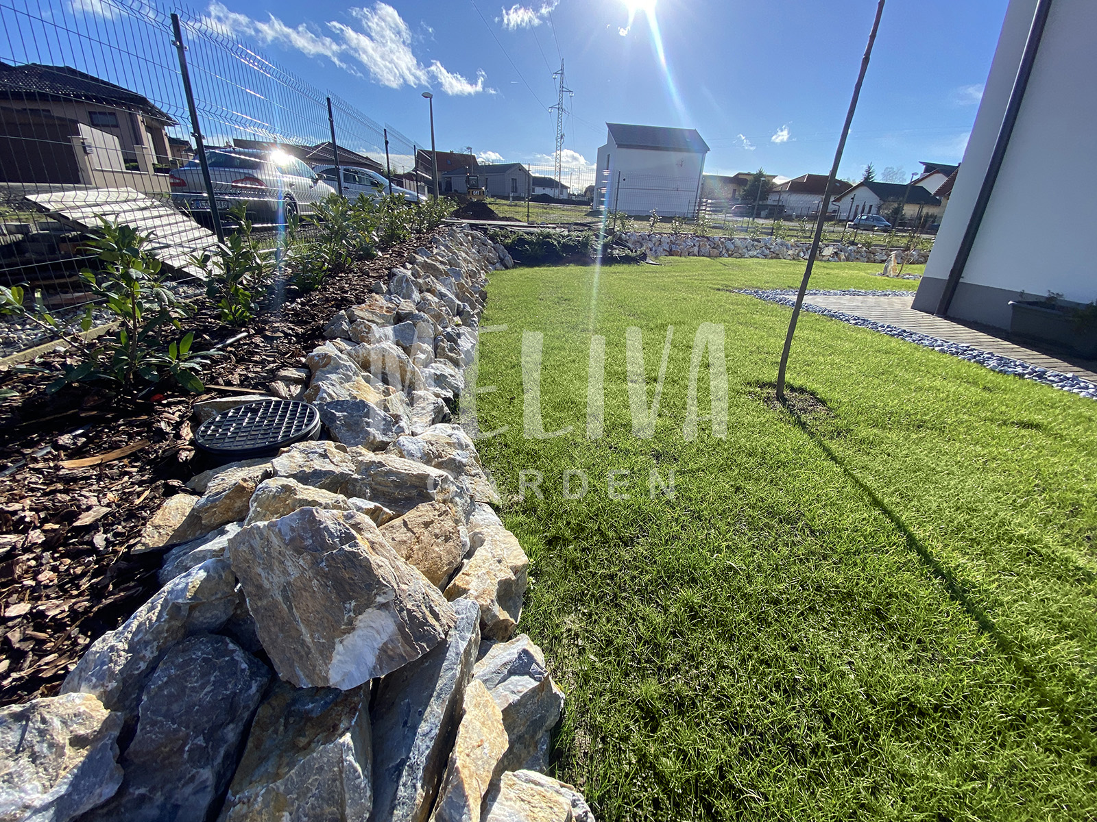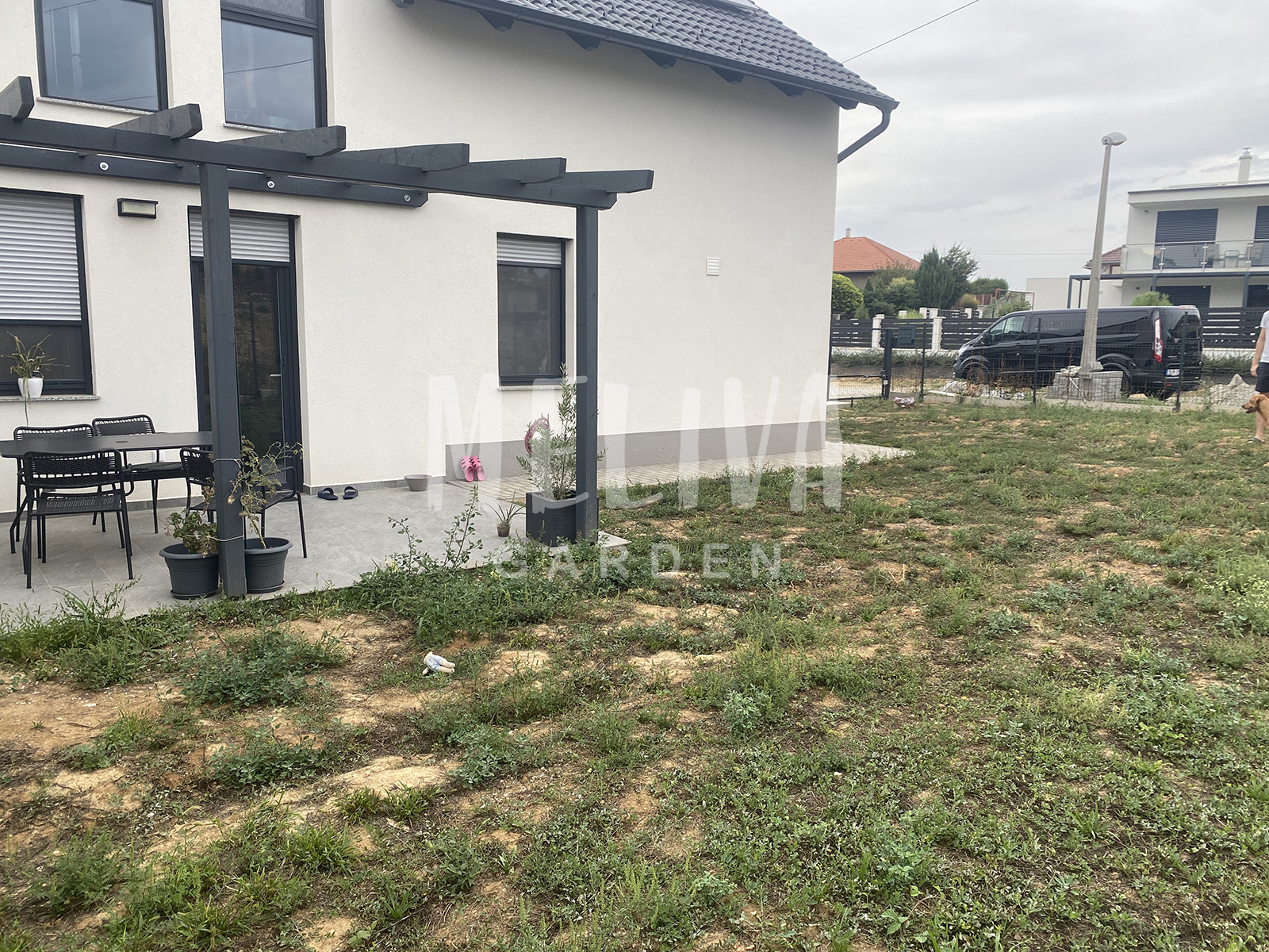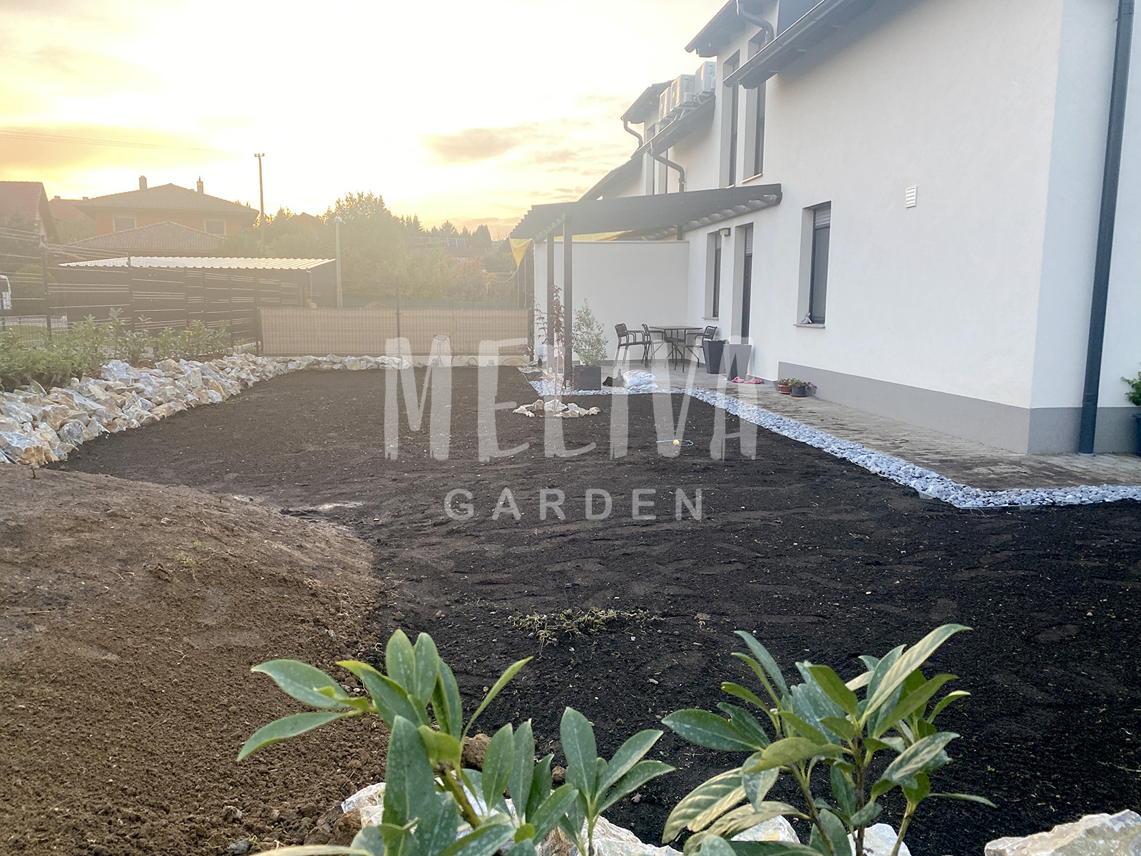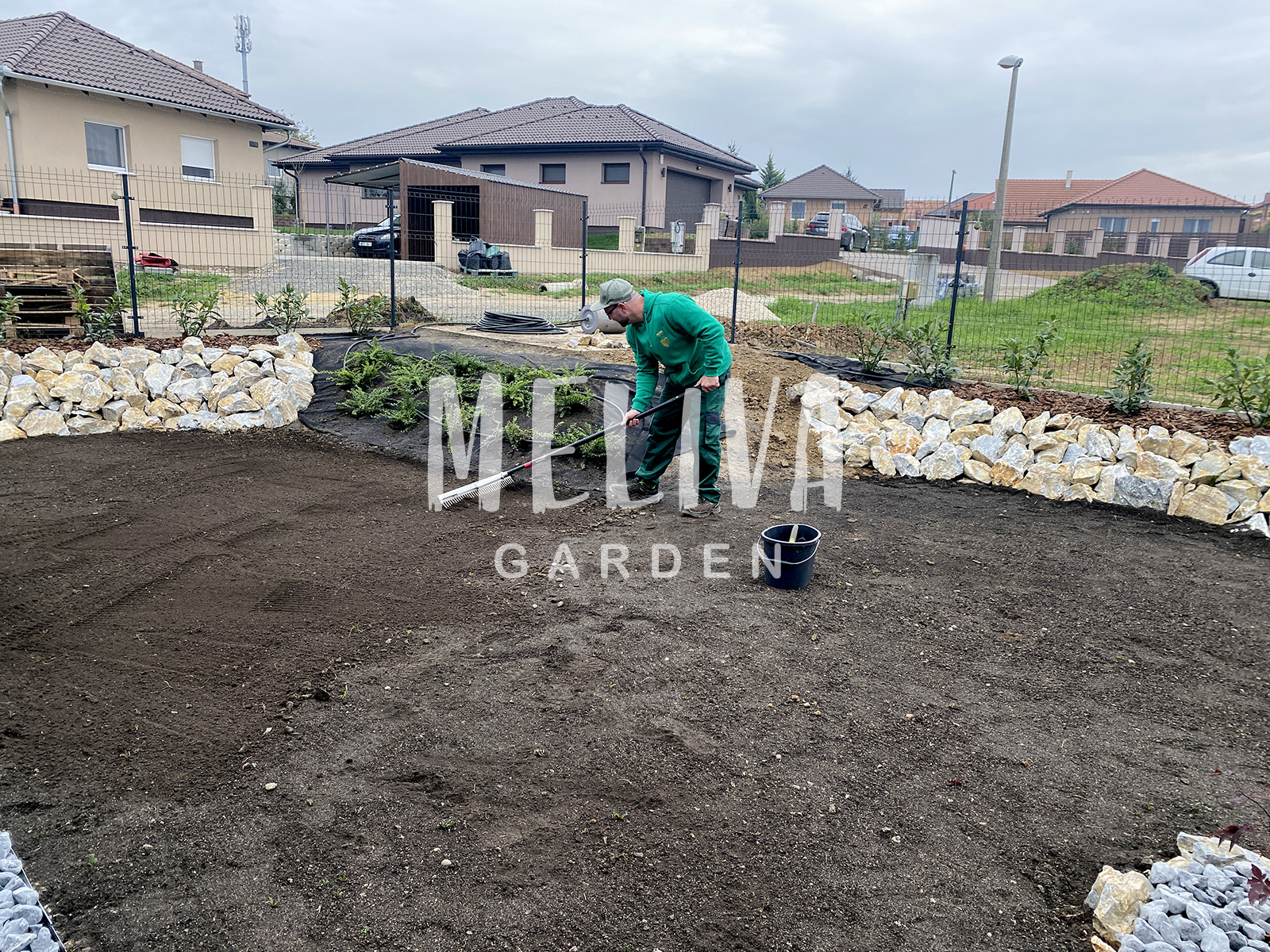 Megrendelő kérésére a kezdetektől volt szükséges zöldterületet kialakítanunk. Ami azt jelenti, hogy az építkezés befejezése után, az ingatlan birtokba vételekor már kezdhettünk is.